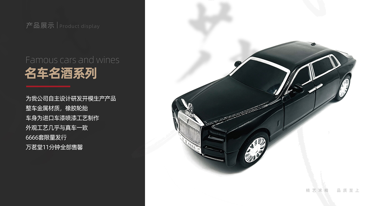 此為企業(yè)文創(chuàng)禮品定制,名車(chē)名酒模型禮品定做案例。深圳市聚福和文創(chuàng)實(shí)業(yè)有限公司是一家集設(shè)計(jì)、生產(chǎn)、制作于一體的企業(yè)文創(chuàng)禮品定制廠家,為企業(yè)機(jī)構(gòu)提供企業(yè)文創(chuàng)禮品設(shè)計(jì)制作解決方案。公司免費(fèi)文創(chuàng)設(shè)計(jì),提供文創(chuàng)禮品定制,企業(yè)文創(chuàng)禮品定制,汽車(chē)文創(chuàng)禮品定制等服務(wù),找廠家批量訂做企業(yè)文創(chuàng)禮品就到聚福和。